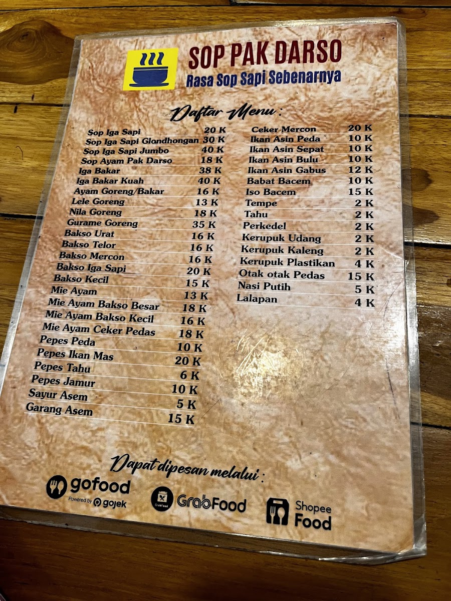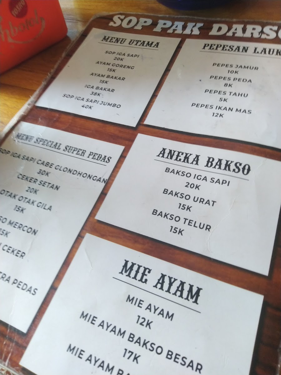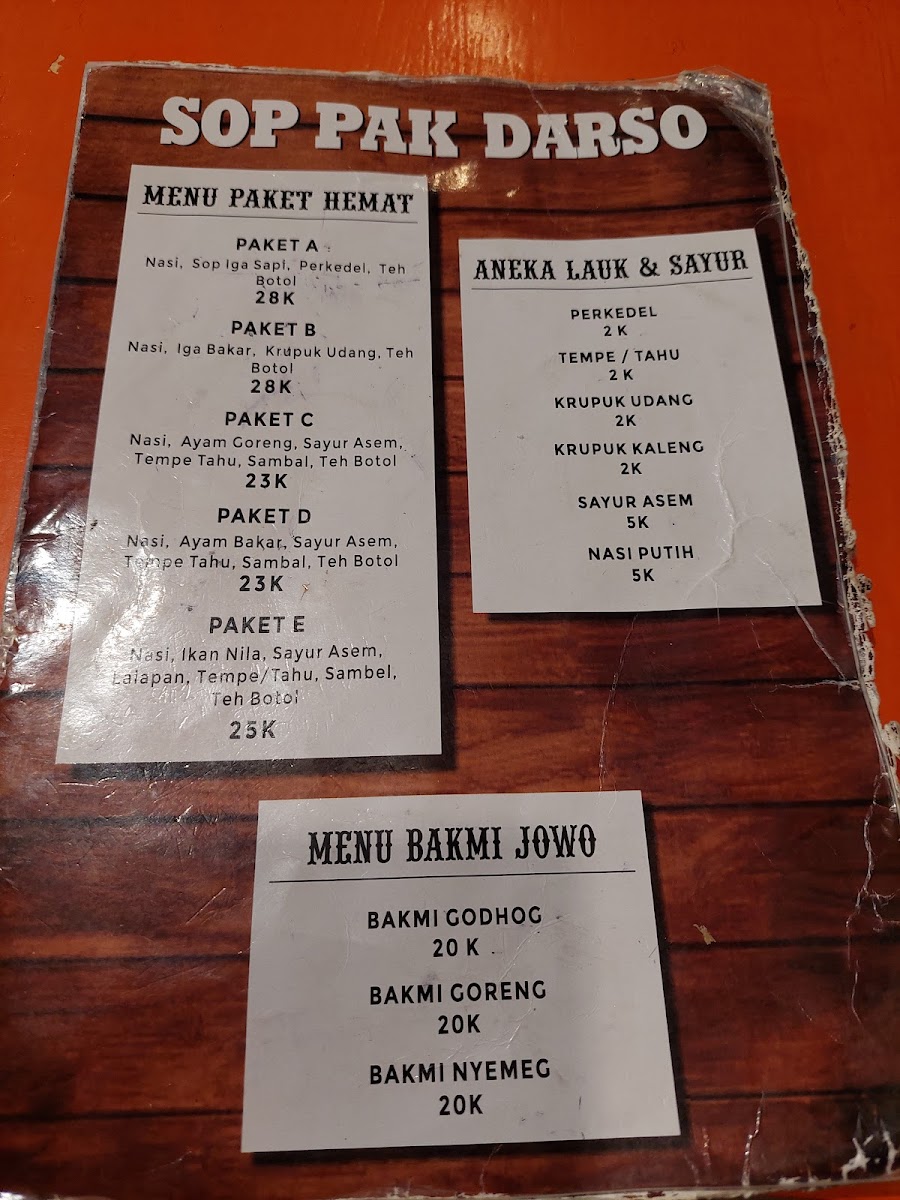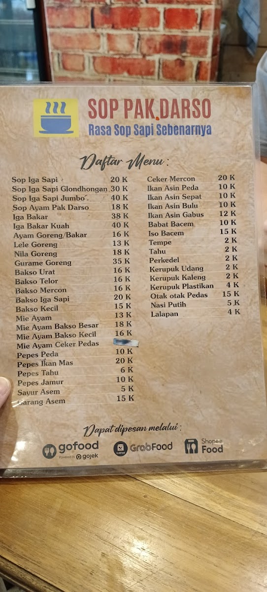 As you dive into the menu, expect a delightful selection of hearty soups that are both comforting and flavorful. The rich, aromatic broths infused with fresh ingredients are sure to warm your soul. Each dish reflects a commitment to authenticity, showcasing the essence of Indonesian cuisine. Whether you're a long-time fan or a first-time visitor, RUMAH MAKAN SOP PAK DARSO promises to satiate your cravings and leave you coming back for more.